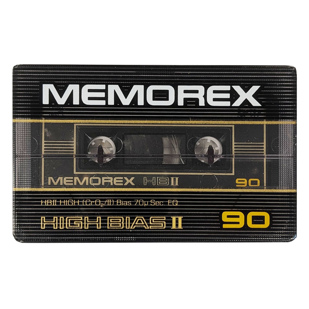 A brand new, wrapped Memorex High Bias II high quality chrome cassette tape from 1982-1984 wound to C90 length, so 45 minutes per side with Type II / Chrome tape.