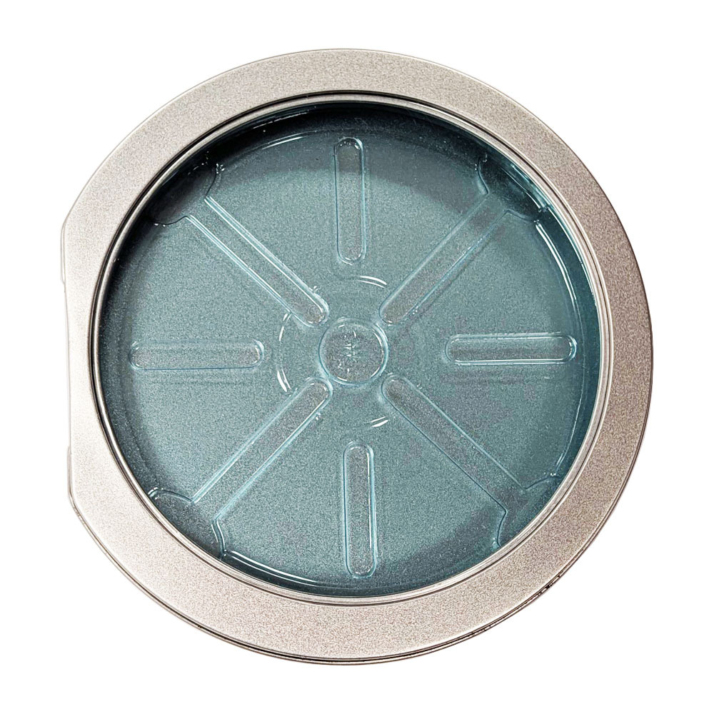 Products » Cases, Packaging and Adhesive Studs » Metal CD circular hinged tin with clear window and custom insert for 12cm discs