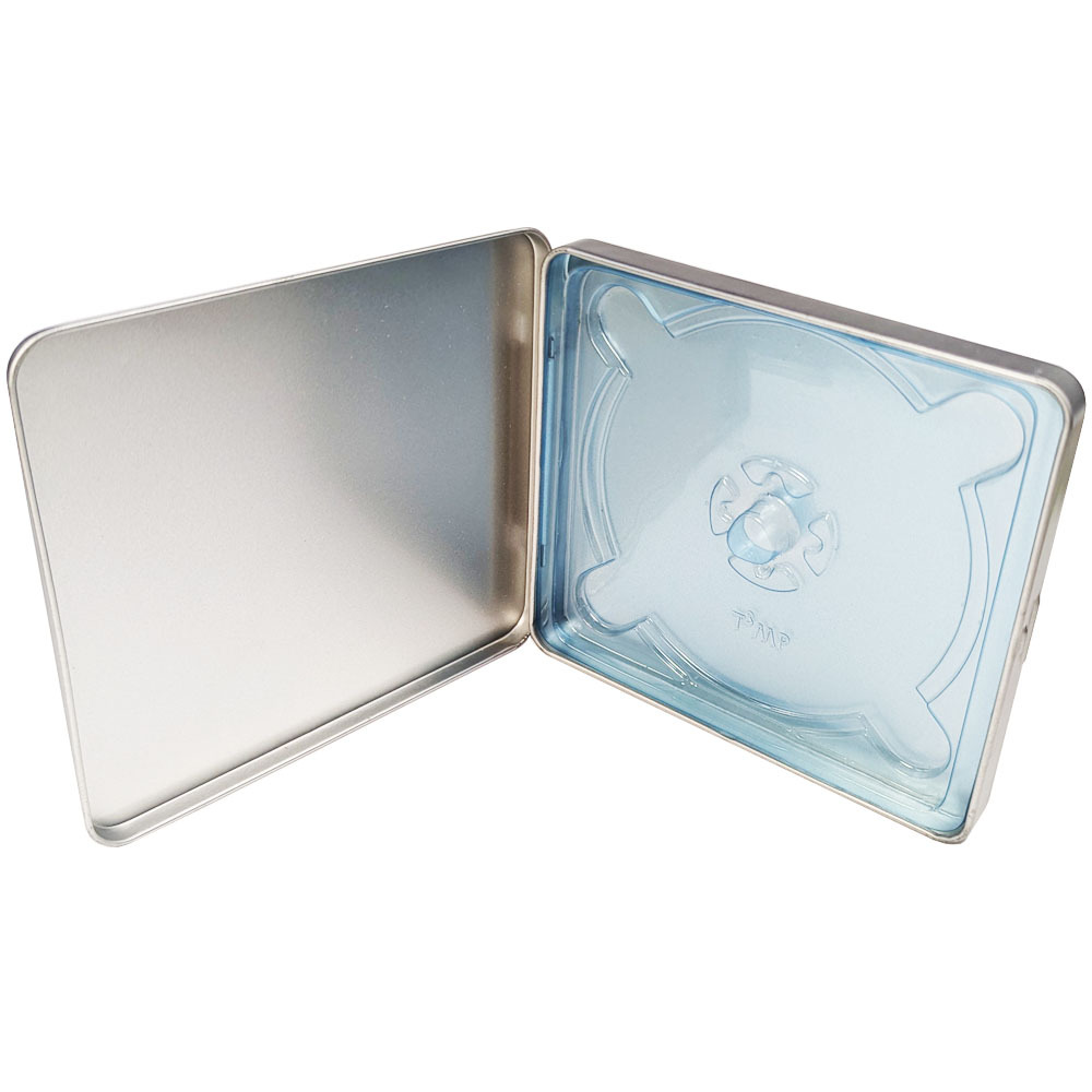 Products » Cases, Packaging and Adhesive Studs » Metal CD square hinged tin with custom insert for 12cm discs